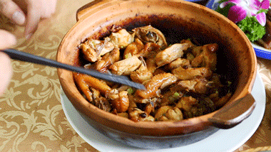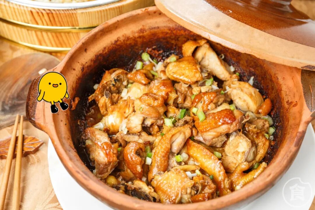 沙煲焗土鸡也是许多人必点的一道菜。在上桌揭盖瞬间,浓郁的香味便迫不及待地钻进鼻尖。