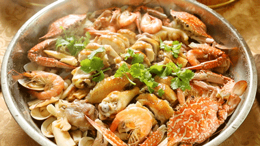 满满一盘的海鲜焗鸡,一盆集齐8种食材,分量十足,在小长假聚餐时,能满足多人的不同喜好。