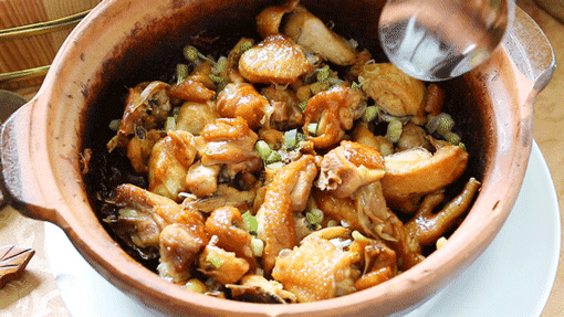 自家养的走地鸡既有充分的运动,又由天然食材喂养长大,肉质十分紧实细嫩。经过花生油焗制入味,更是让人欲罢不能。