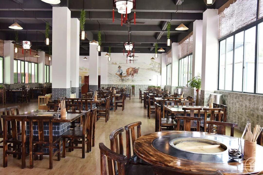 木质的椅凳,仿砖造的桌台,充满乡间情趣的手绘壁画,这里的一切装饰都让人感受农家般的温馨。