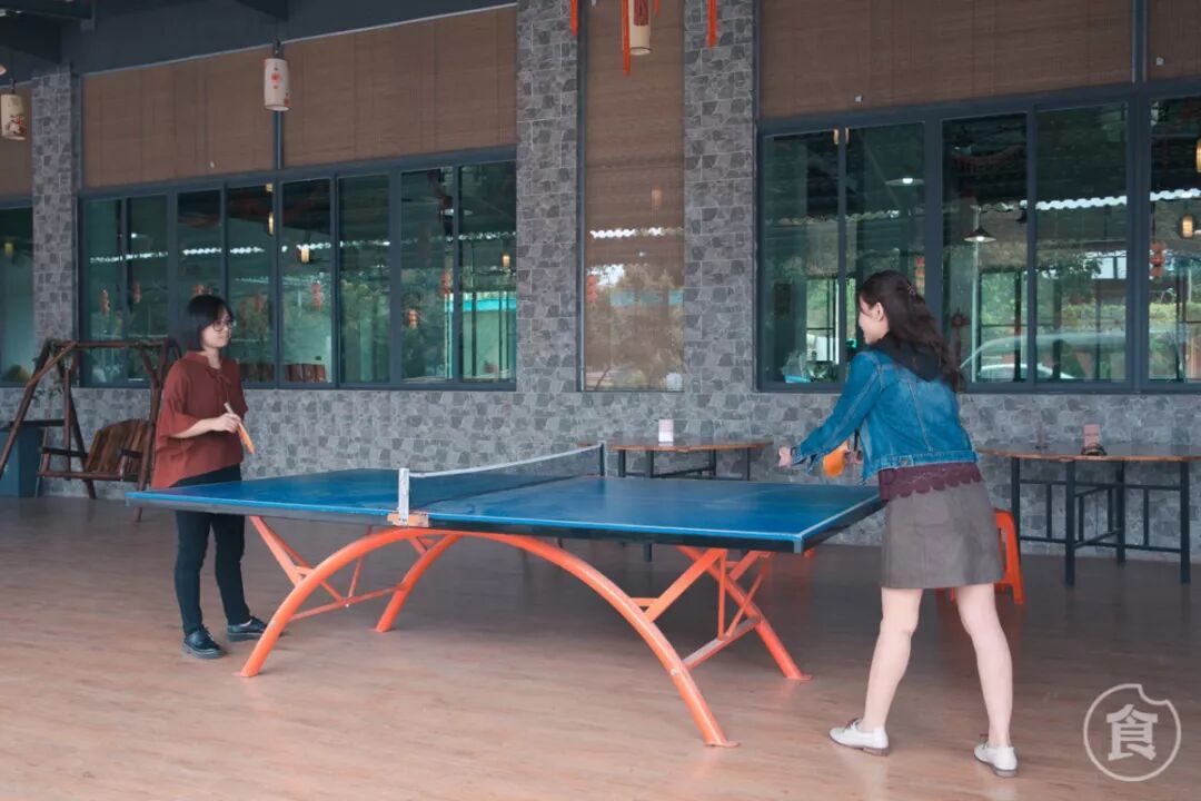这里还设有秋千、兵乓球桌等游乐设施,让人脱离手机和网络的控制,享受片刻的惬意和悠闲。