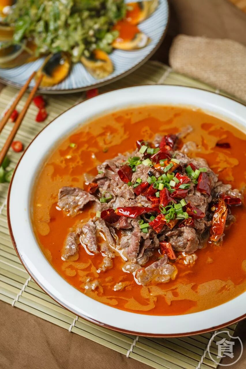 厚薄均一的切片牛肉,下锅几秒后便盛起浇油,始终保持丰富的肉感。吃的时候,会惊讶于那不时跳出的黑胡椒带来的麻辣刺激。