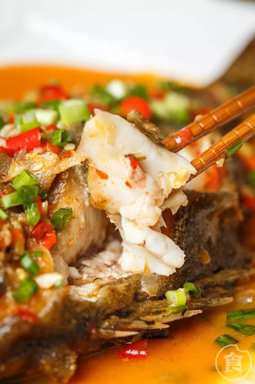 “咕噜咕噜”的沸腾声音,是它即将装盘的预告。先煎后焖煮收汁的步骤,让它变得外焦里嫩,鱼肉还特别入味。