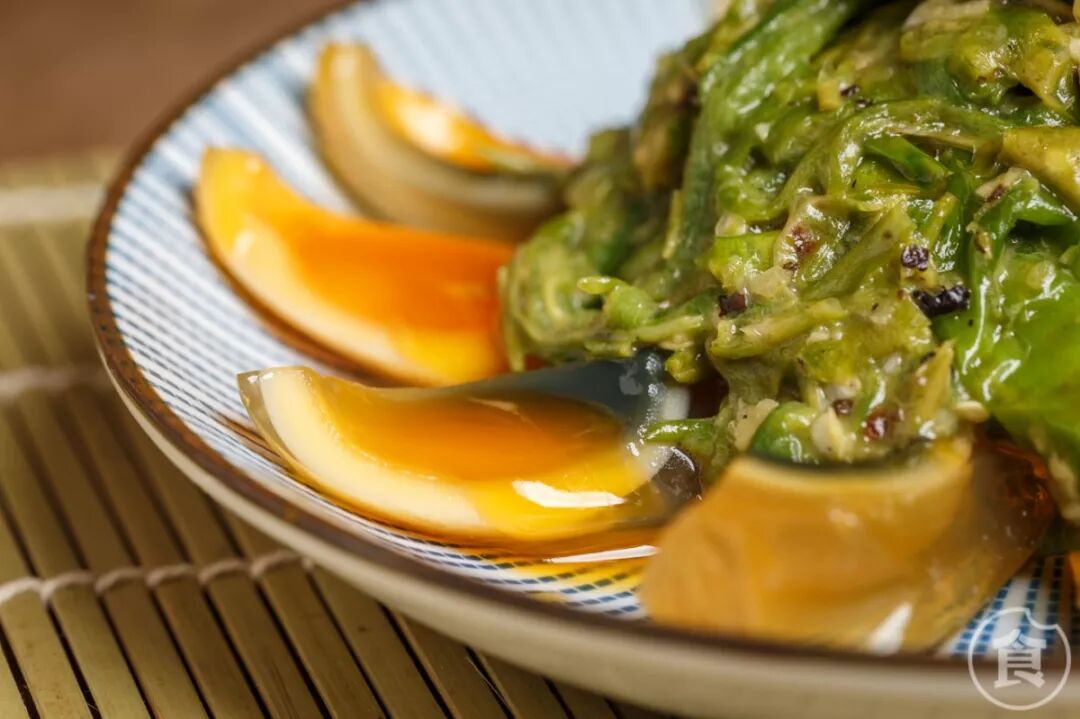 吃过擂椒皮蛋,却没有试过擂椒溏心皮蛋。辣椒擂制后,咸香滑腻,一点都不辣反而很香口,适合作为配料入菜也能单独盛盘成菜。