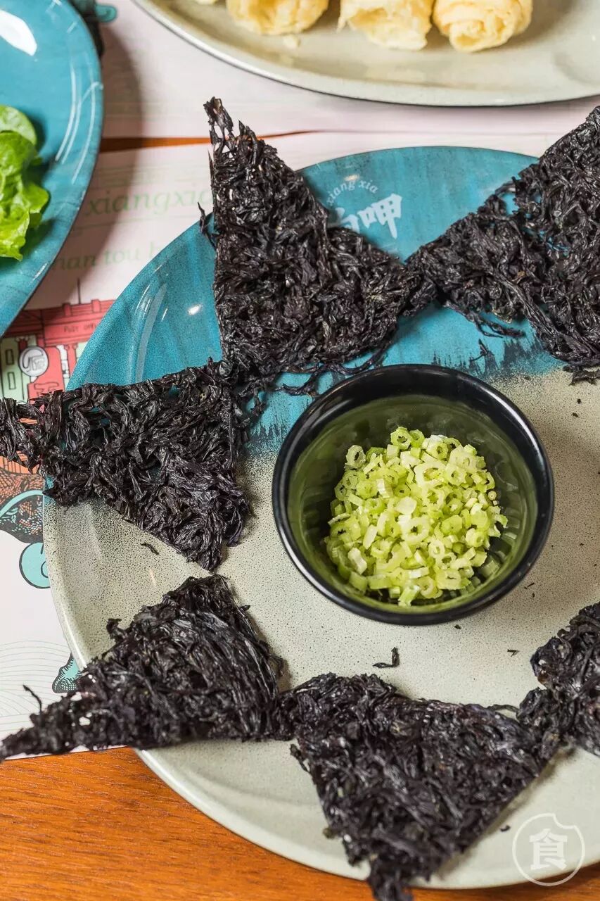 紫菜在沸腾的汤汁烫一下,放点芹菜碎,倒一勺汤;就这3步,立刻感受到潮汕妈妈做的快手汤的味道。夹着淡淡芹菜香,超好喝。
