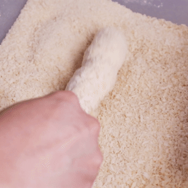 包上裹浆并在面包糠中翻滚,下油炸至金黄
