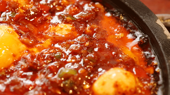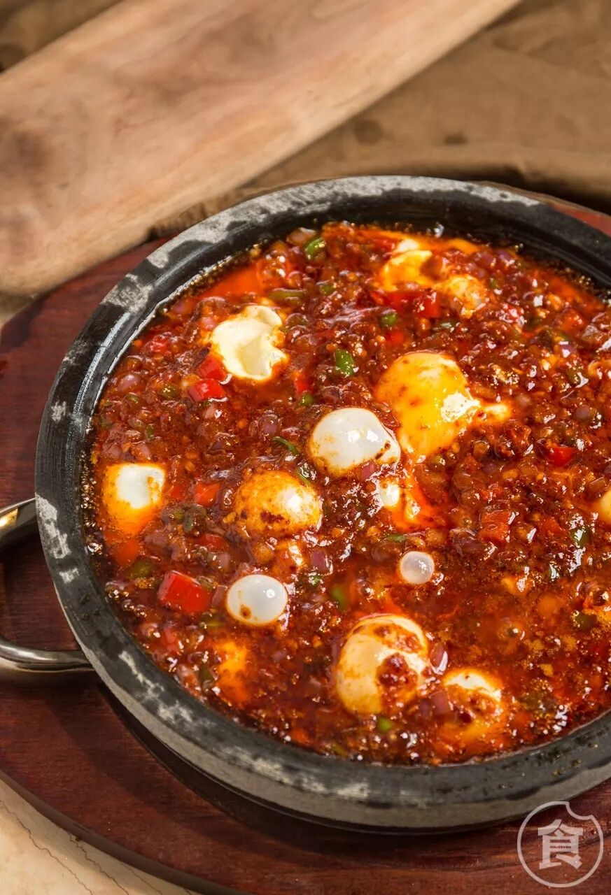 见过鸡蛋的n种做法,石板鸡蛋倒是很少尝试到。利用石板高温将鸡蛋慢慢煎熟。表面淋了秘制辣酱,不会过辣,更添浓香。