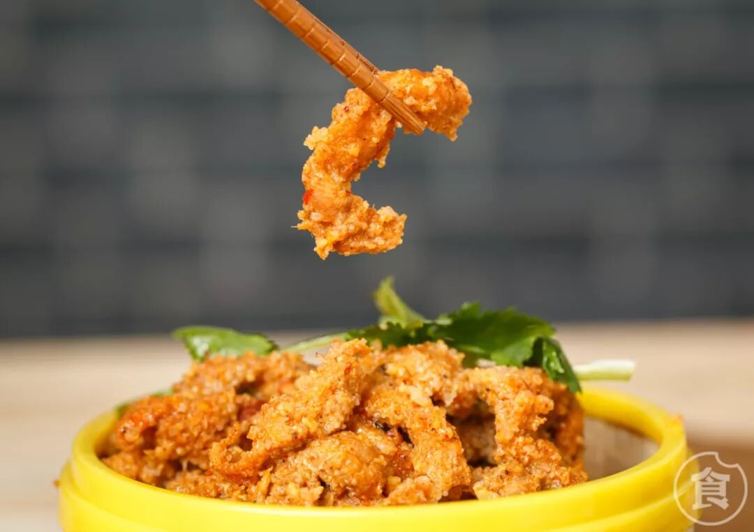 羊肉切成细条,裹上香料,垫上土豆蒸制。考虑到广东人的口味,羊肉格格不会太辣,而是更加香嫩。