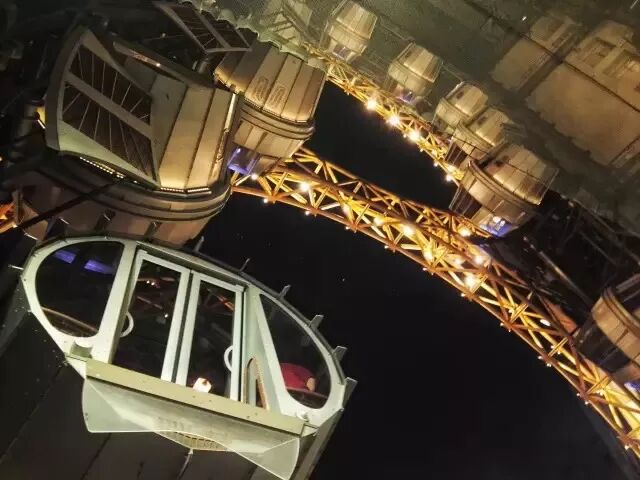 建议在网上订票,比在现场买要便宜地多,而且最好在傍晚乘坐摩天轮。里面一共设有17个车厢,放有复古科幻的背景音乐。