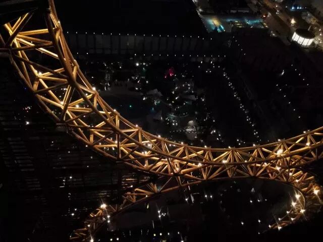 车厢设计采用各种玻璃接合,透光度极高。车厢底有一块通透的玻璃,站在上面,就…很恐怖啊。但不能不感叹,这里的夜景很美。