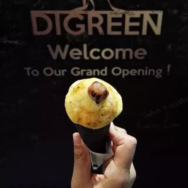 官也街附近有一家甜品店DIGREEN,招牌是“焦糖蛋竹炭脆筒”。