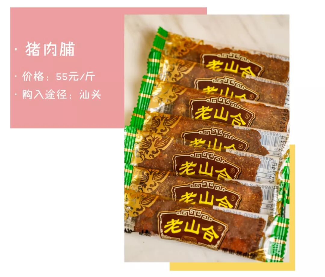 地道的汕头老牌子,猪肉脯较干,咸香有嚼劲。小小的独立包装,吃的时候完全不会弄脏手,非常方便。