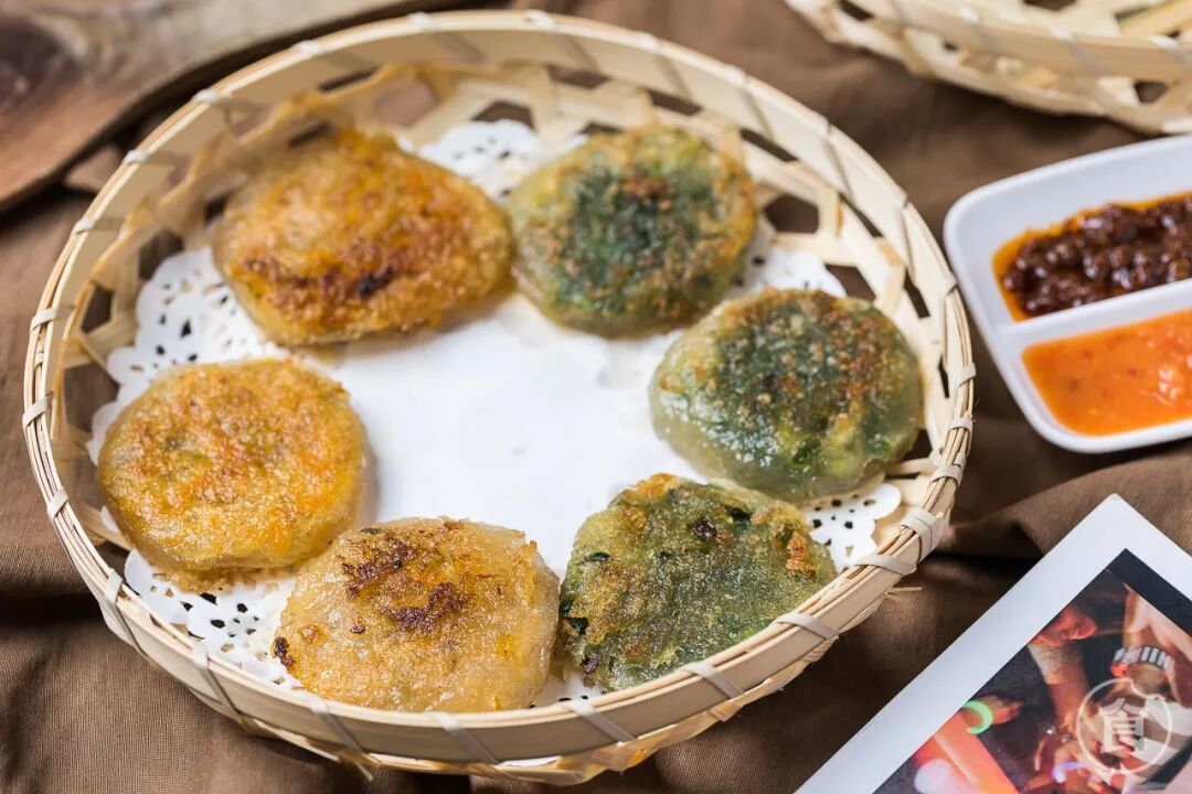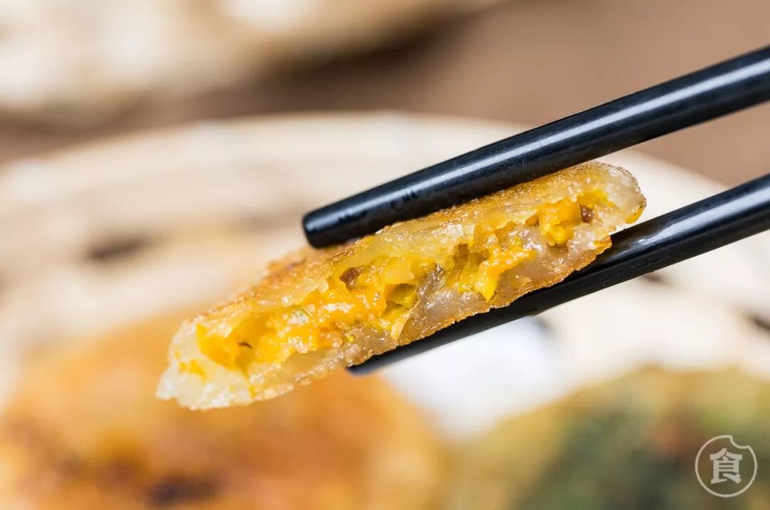 番薯粉制成的粿皮,不含一点米面成分,在油锅中煎得金黄焦脆,而内里却依然能够保持软糯柔韧。