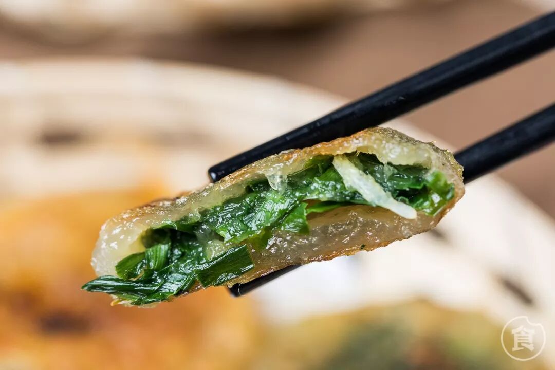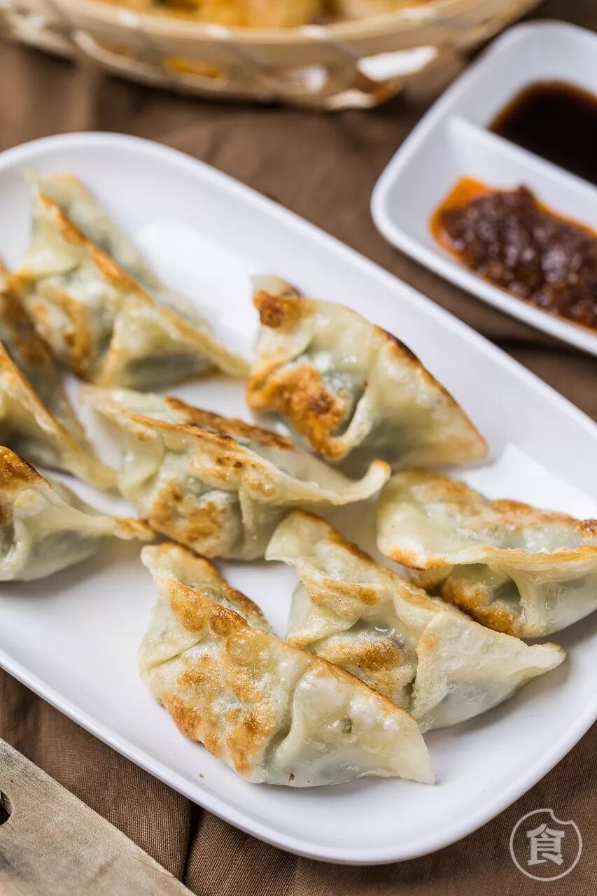 店里的韭菜煎饺,皮薄馅大,煎得金黄,表皮带着一点酥脆的焦香。