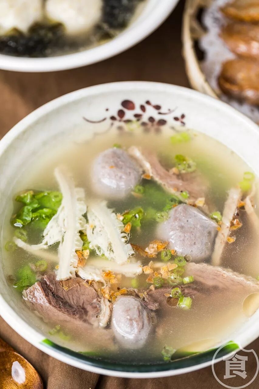 作为从小生活在海滨之乡的潮汕小编,一进店必先来一份达濠鱼丸汤。单看漂浮在汤面的炸蒜蓉和芹菜粒,就知道这是一碗有灵魂的鱼丸汤了。