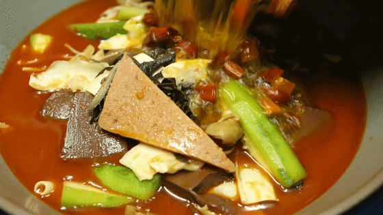 熬制好的汤汁,必须要来个滚油。这个步骤,让各种香料的味道融进食材里面,油在汤汁中爆开,看着就很有食欲。