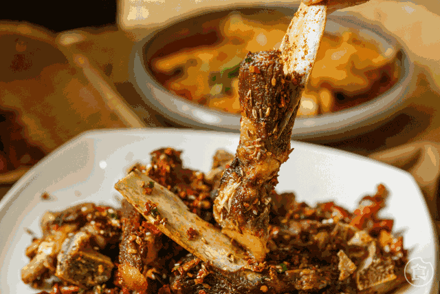 做好的羊排外焦里嫩,咬下去连皮带肉轻松脱骨。带着一点羊膻味,附上孜然的香,辣椒粉多重夹击,好吃到停不下来。