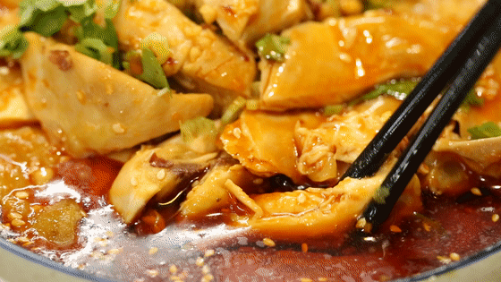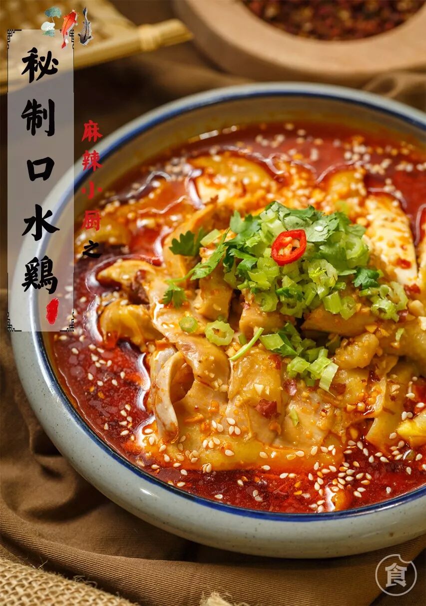 郭沫若说:”少年时代在故乡四川吃的白砍鸡,白生生的肉块,红殷殷的油辣子海椒,现在想来还口水长流。”也因这“口水”二字,成就了一盘“口水鸡”。