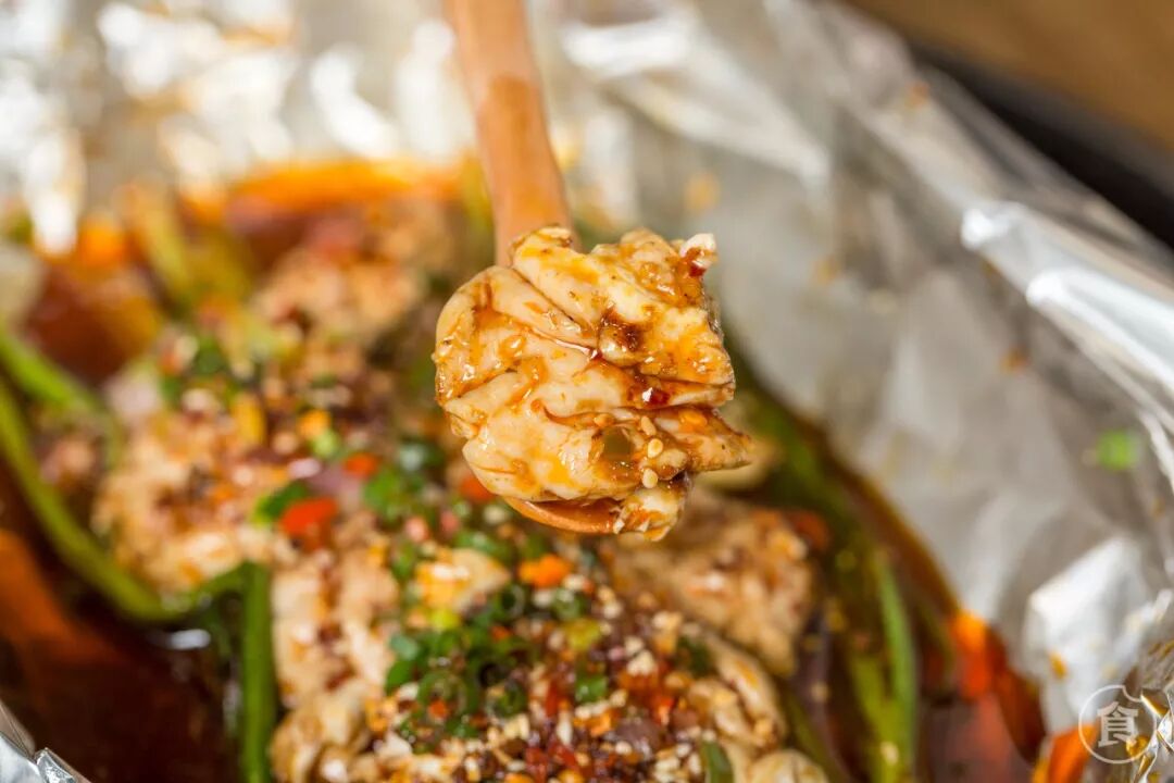 出锅你就能感觉到油和辣浓郁的香味,每一块鱼肉都带着一点微红的油脂。即使满盘的干辣椒和花椒,也没有夺走鱼肉的鲜味。
