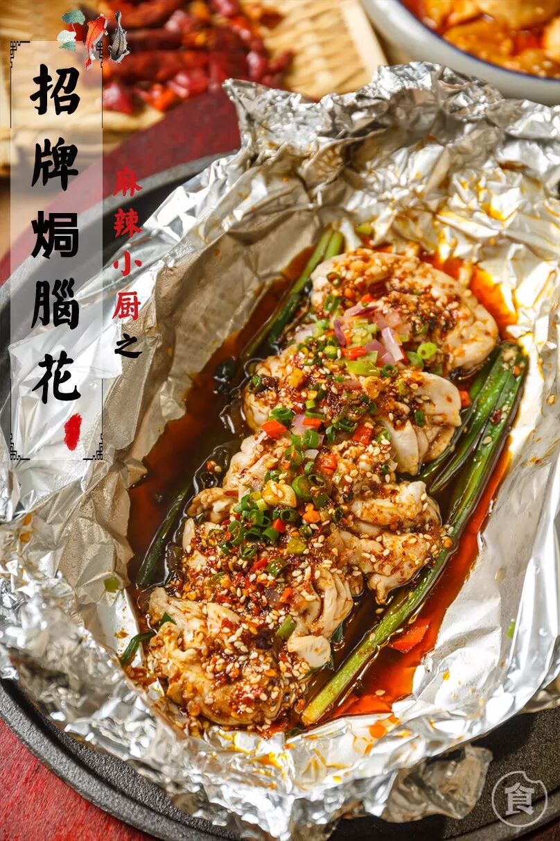 其实脑花口感就像一块豆腐。处理干净后脑花,口感嫩滑,还带着一种特别的绵密口感。