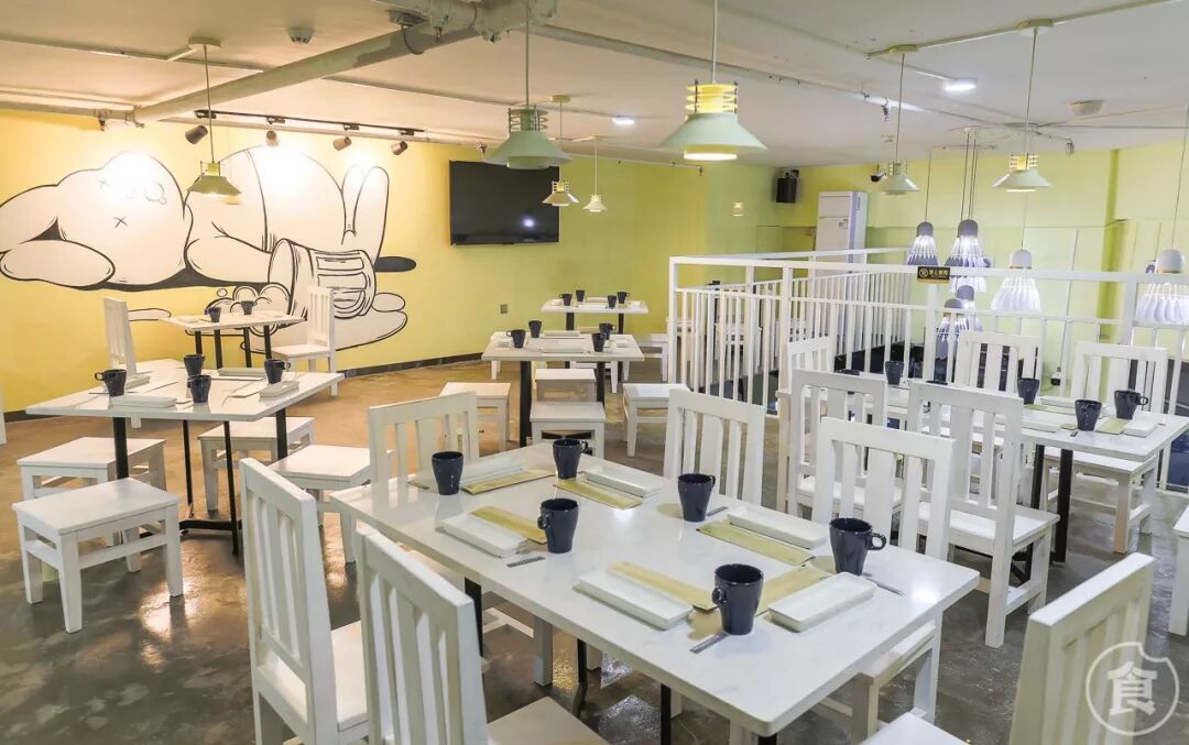 二楼的风格则是暖黄和纯白为主打,宽敞的环境,墙上的壁画是拍照的亮点,好友聚餐时可以选择拼桌,大口喝酒大胆撸串的同时还能拍酷炫的照片发圈~