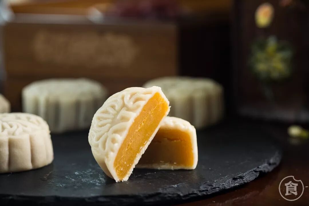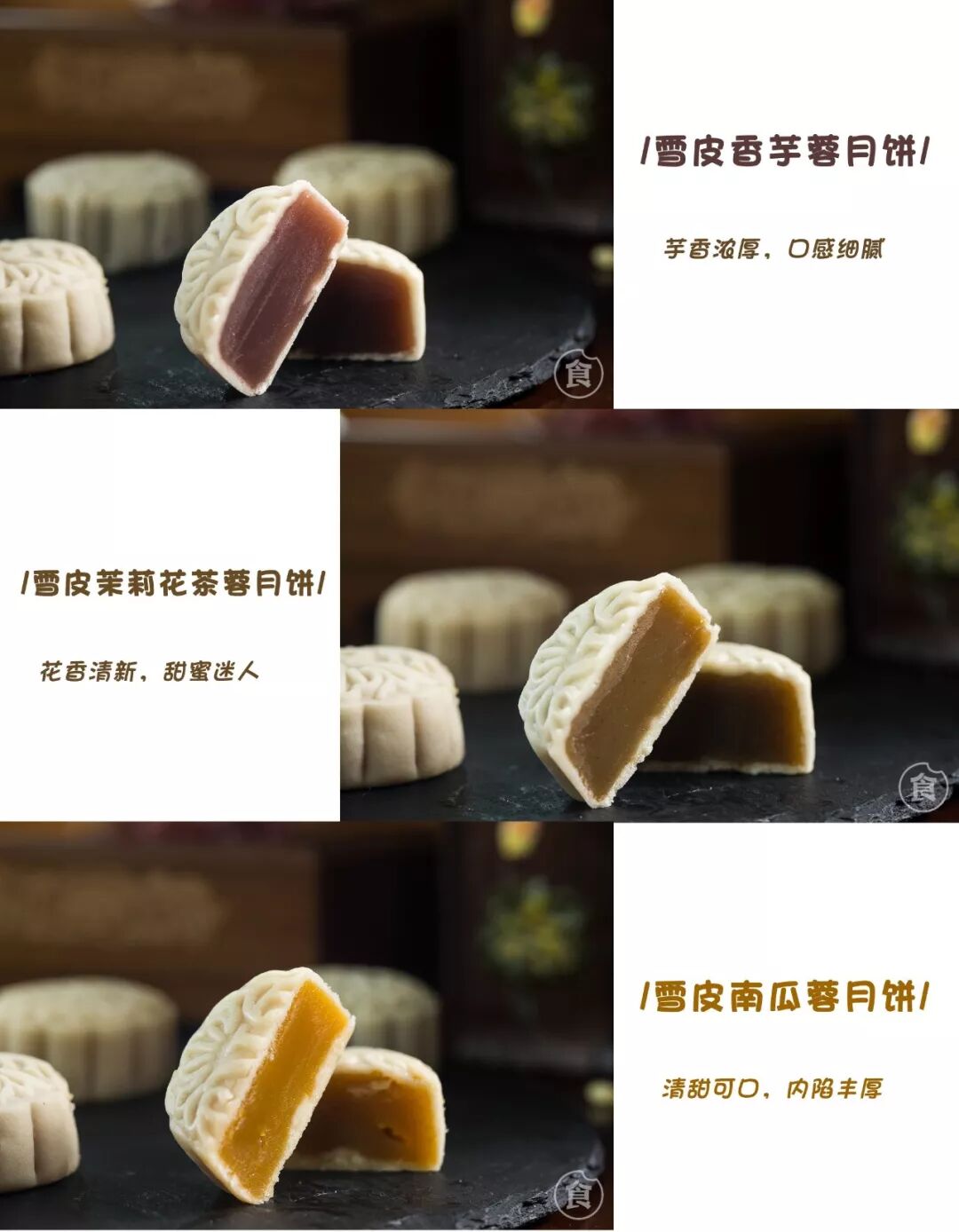 雪皮月饼的饼皮洁白柔韧,比普通冰皮月饼的饼皮稍厚,但也十分莹润剔透。无需冰鲜保存,更加方便。