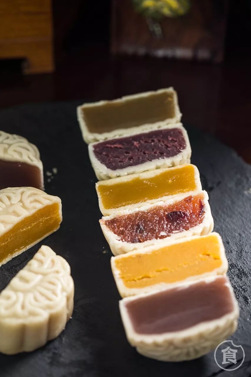 虽说雪皮月饼外表看起啦没多大差别,但是切开后内里却“大有乾坤”。各种口味的月饼“争奇斗艳”,斑斓的内陷如彩虹一般,颜值满分!