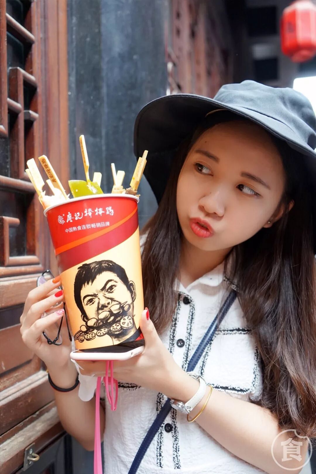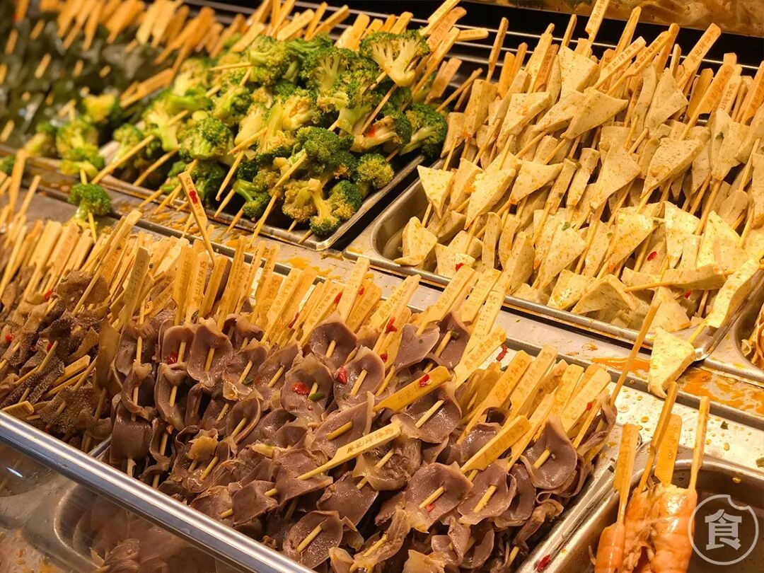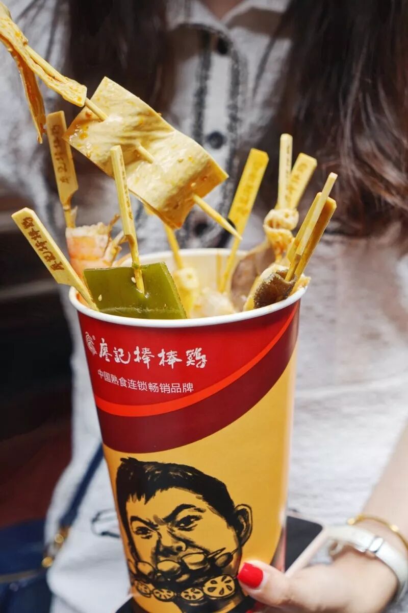 走在路上,几乎人手一杯廖记棒棒鸡。食物柜前挑选好后,店员小姐姐会将食材过一遍红油,然后就可以拿着吃啦。