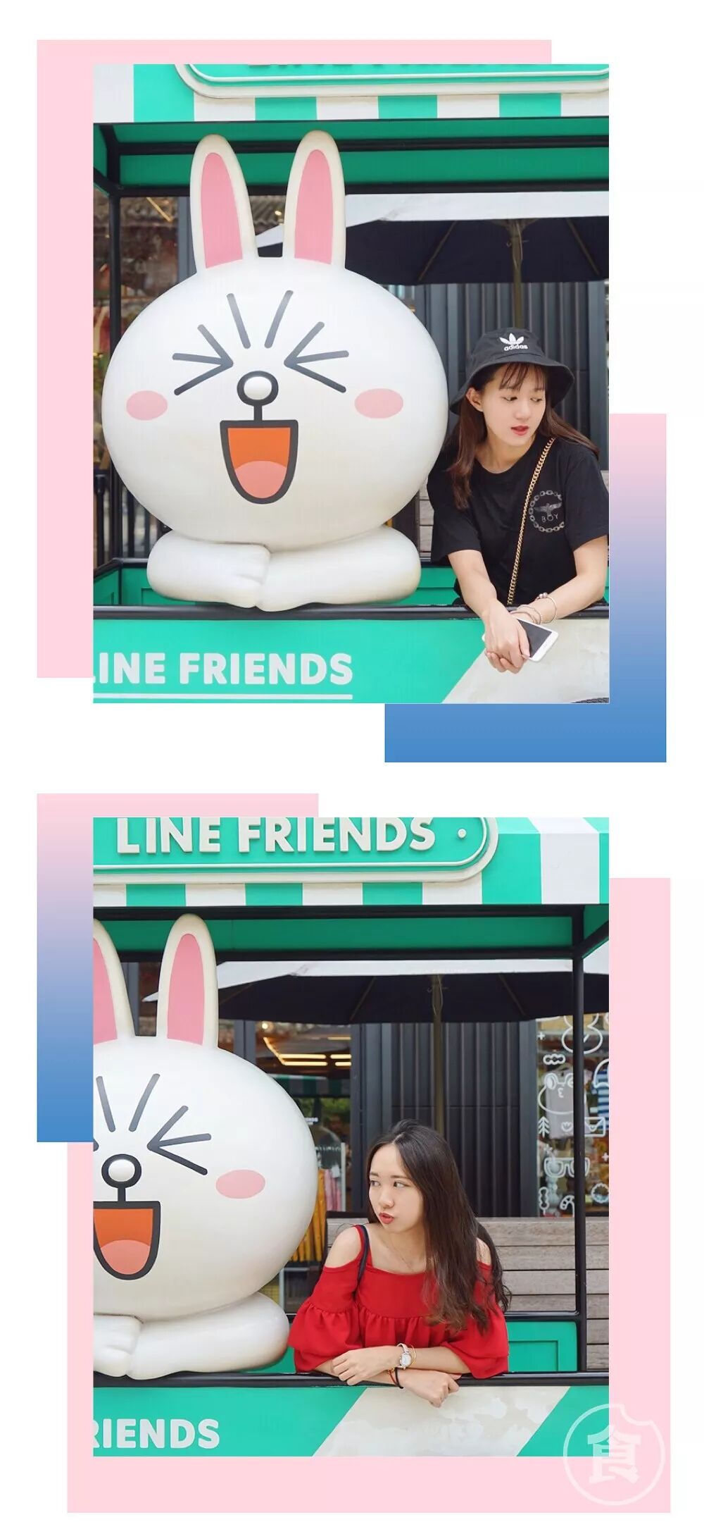 门口有很多Line Friends的卡通可以拍照,这只巨型布朗熊就非常吸睛了,恨不得一天都泡在这里,享受这种浪漫甜蜜的氛围。