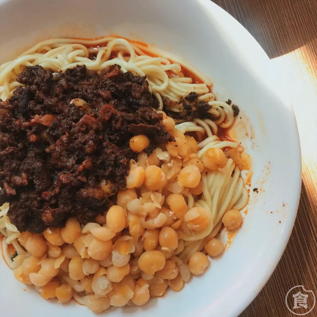 豌豆煮的绵软、杂酱非常入味、面条有筋道,搅拌均匀后每根面条都蘸满了香气扑鼻的红油、丰富浓郁的杂酱和香甜软糯的一粒粒大个豌豆,满足感油然而生。