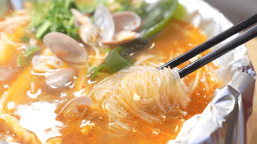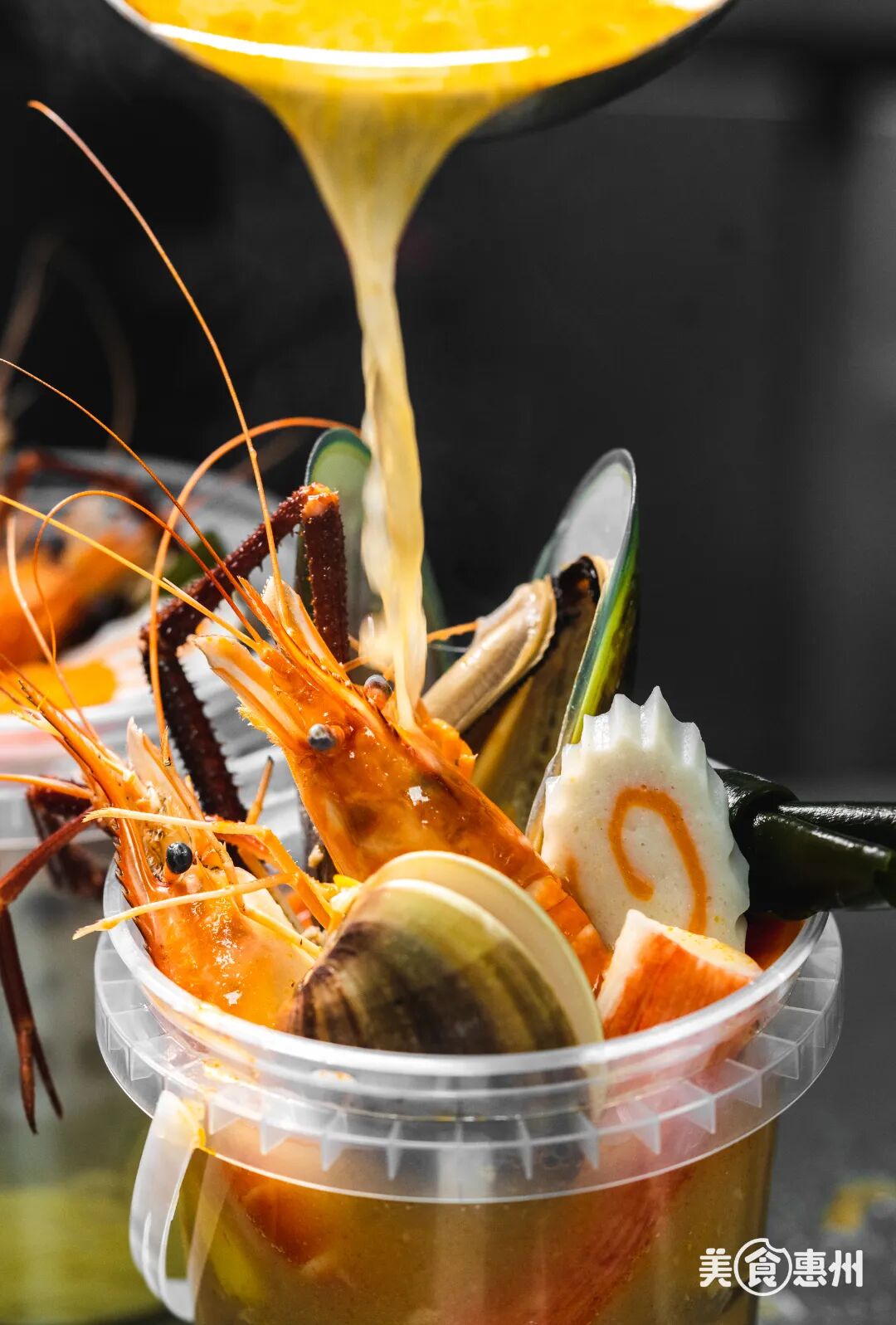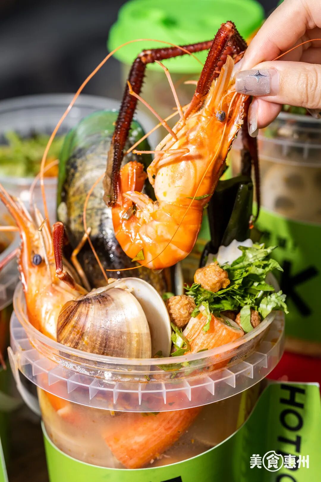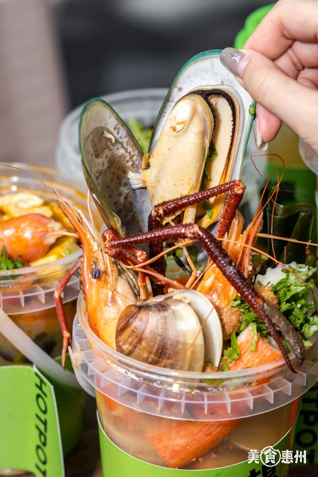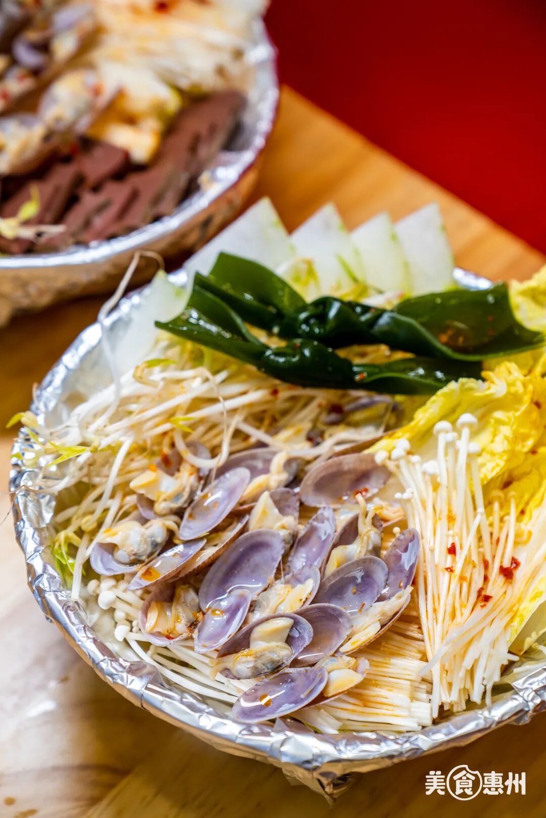 加上独家秘制酱料,花甲在热汤里噗噗开了嘴
