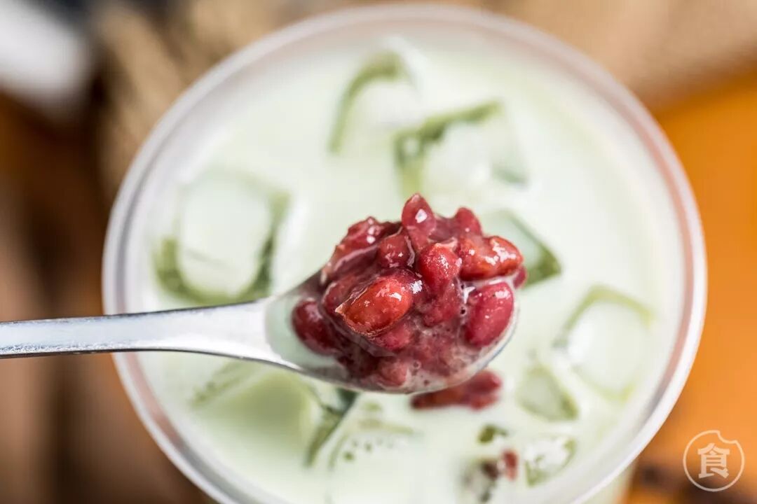 插入吸管把冰沙状的草莓冰大口喝下肚