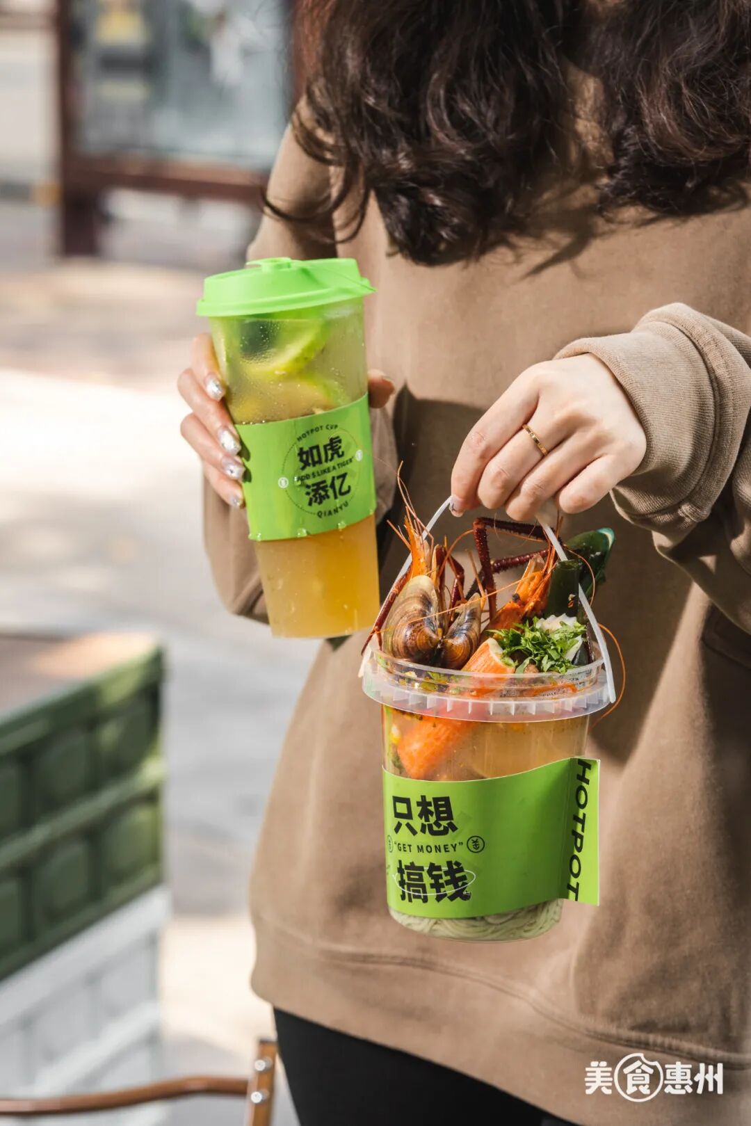 就是它!火遍全网的火锅杯,惠州也有专门店啦!少见的火锅新潮吃法,外观设计和饮料大号杯相似,点一杯到手直接开盖就能吃了~人均不过20+/杯,随买随吃超级爽。