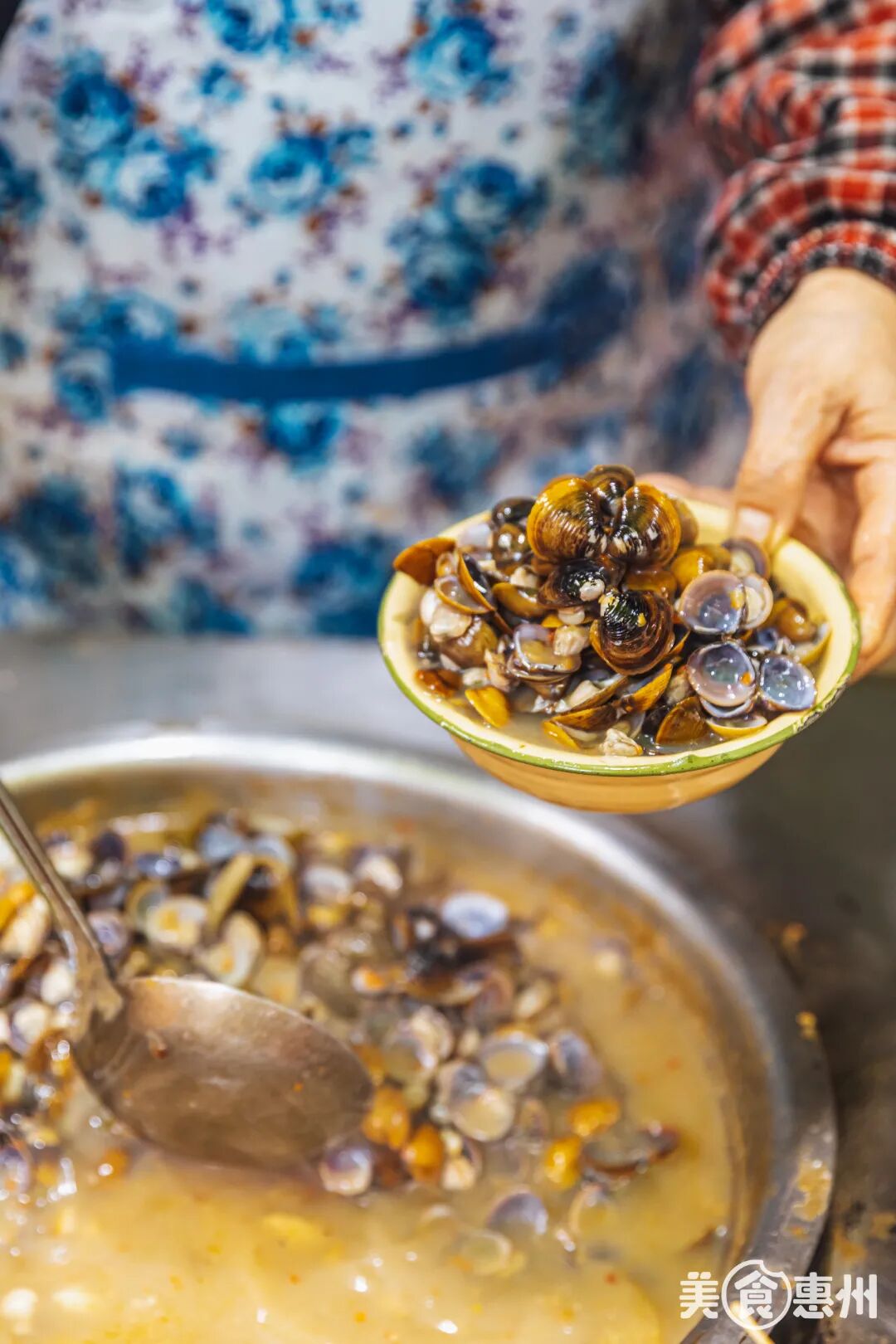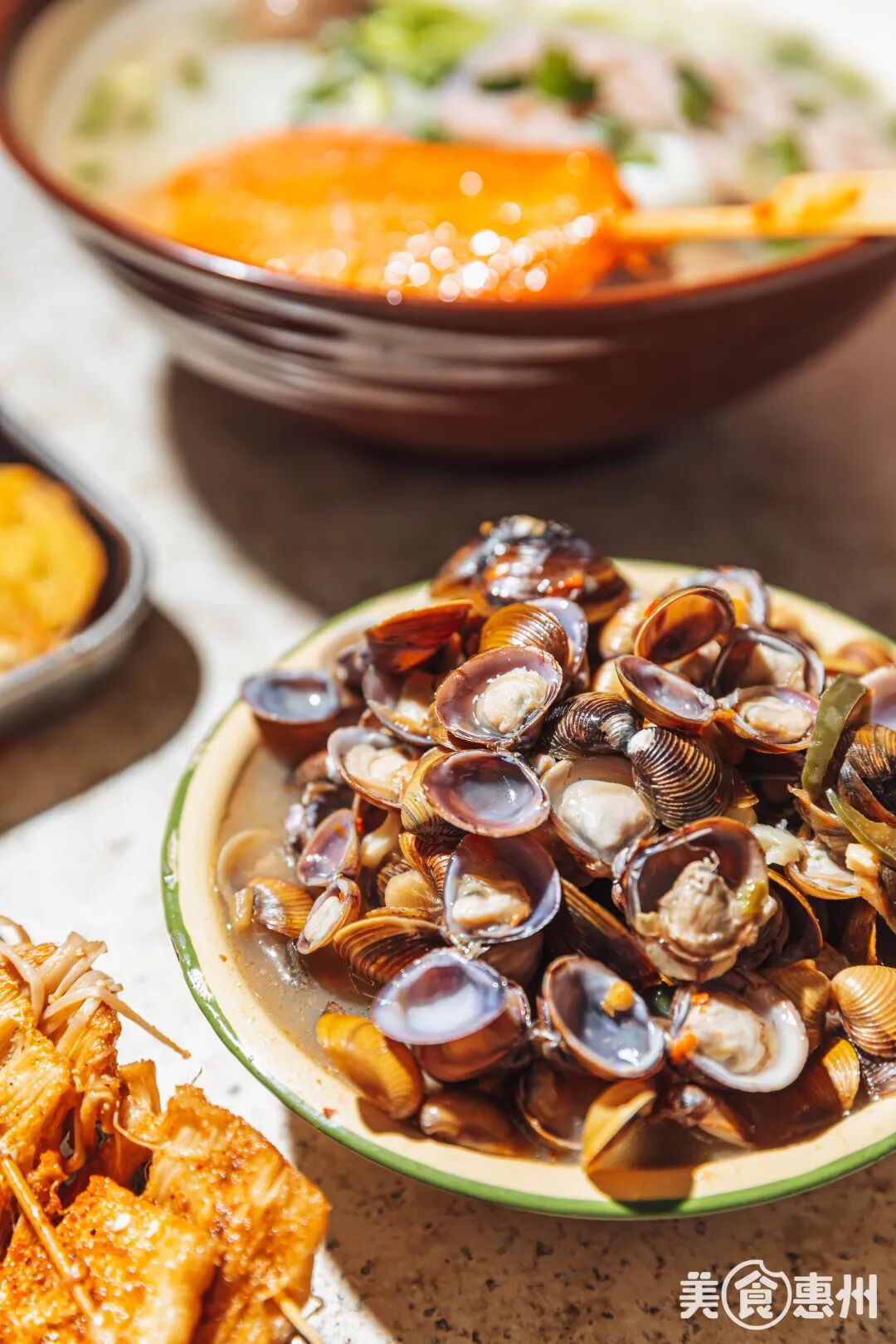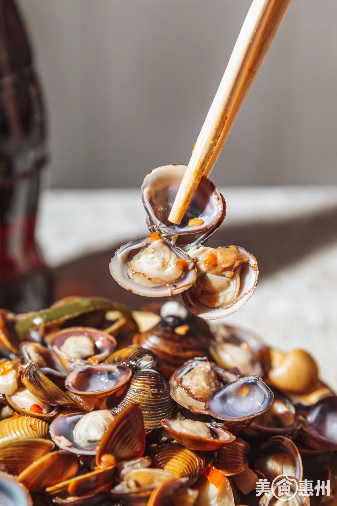 惠州的东江和西枝江盛产河蚬,蚬可以说是惠州人从小吃到大的美食之一了,随机挑选一家宵夜档基本上都能在菜单上看到有蚬的身影。兰姨家的捞蚬没有沙,略带点辣且入味,一个人分分钟吃完一份。