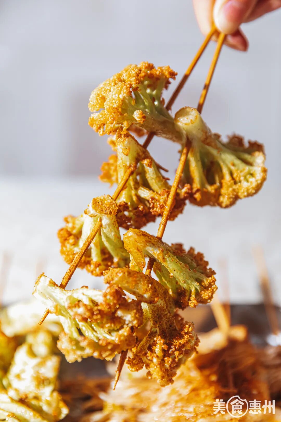 相比炸包菜,小莓更偏爱炸花菜。花菜头部和分支部的口感是完全不一样的;经油炸后,较吸油的头部是略带沙沙口感的香脆,而分支部则仍然保持着原始鲜甜的味道和略带嚼劲的口感,一整块花菜入口,口感丰富十分上头!