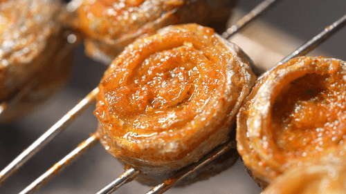 烤肥肠的有着和榴莲一般的魔力,脆爽的外圈抵挡不住内里软嫩爆汁的反差口感,一吃就会上瘾!蘸上干碟更是停不下来~