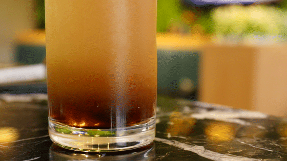 这杯玫瑰美式在底部加入了玫瑰糖浆