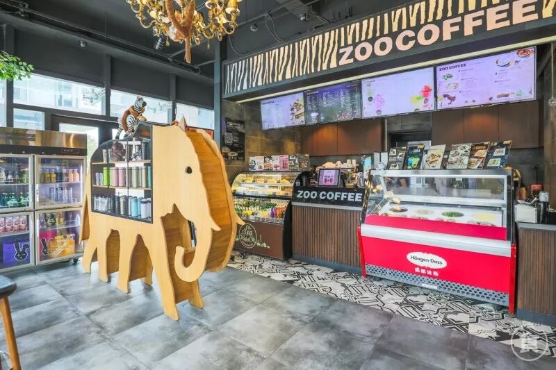 位置很好找,就在江北华贸天地星巴克往前约500米处,店外放置了许多仿真动物模型和绿植,高度还原动物园的场景。