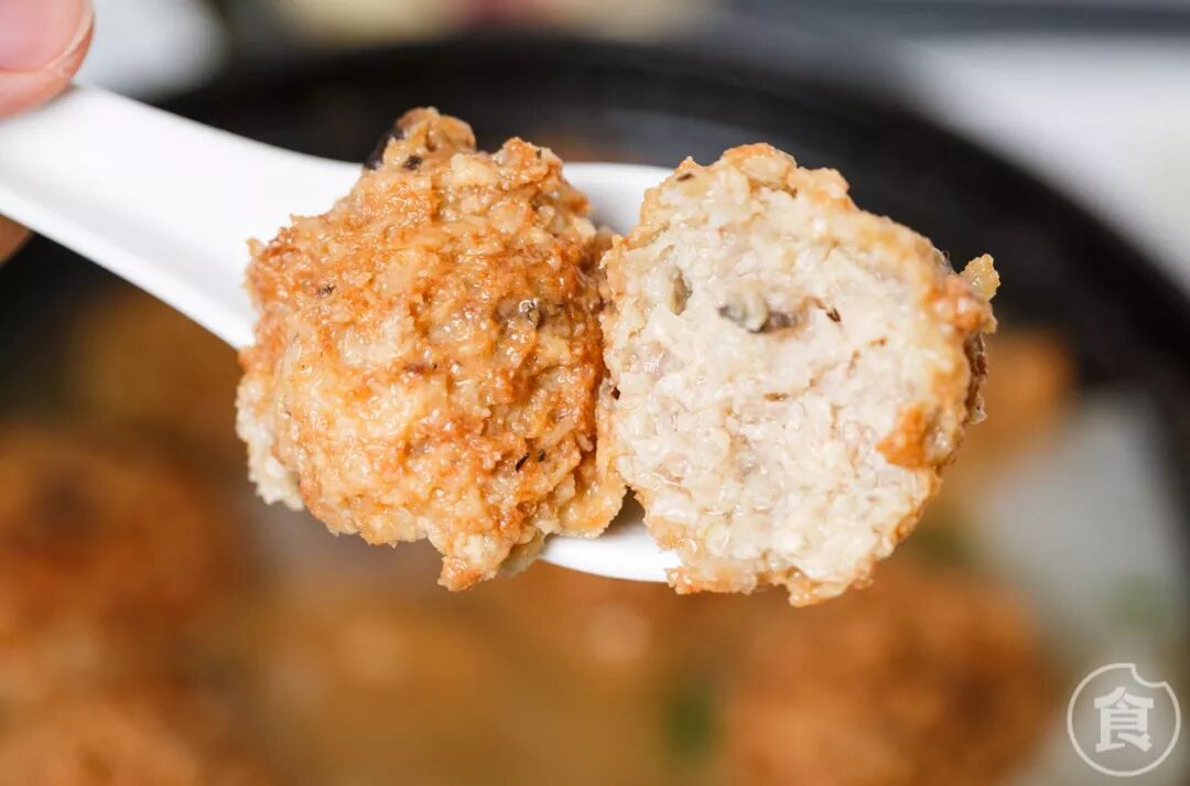手制猪肉丸留有肉碎的咀嚼感,碌汤前经过了油炸,紧紧锁住了肉汁。吃肉丸后再喝一口汤汁,点点胡椒味和汤汁的鲜甜味很配。