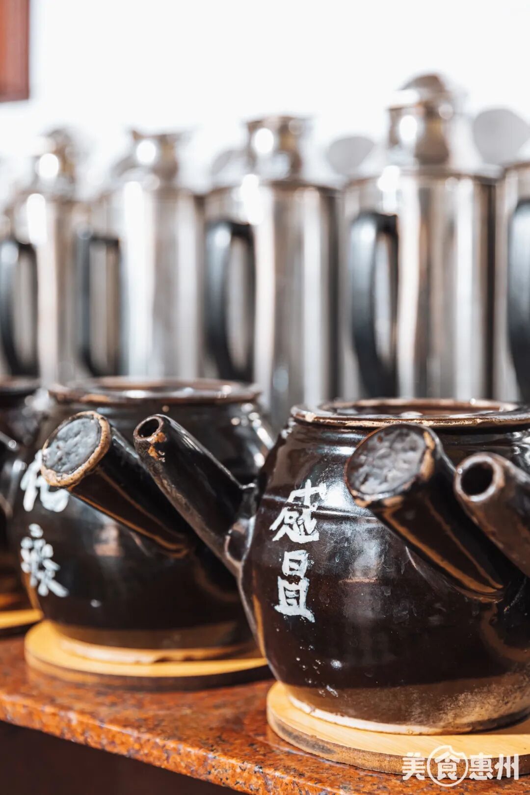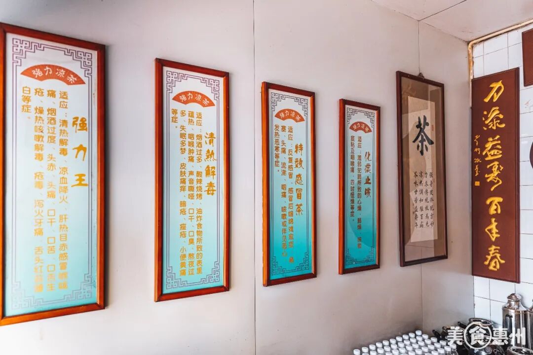 步行街的强力凉茶是多少惠州人的童年记忆,吃了热气的或者是有些燥热都会被妈妈拉来喝上一杯“强力王”,深棕色的凉茶、发黑的瓦煲底,皱着眉头、捏着鼻子必须要一口气喝完才不会觉得太苦。