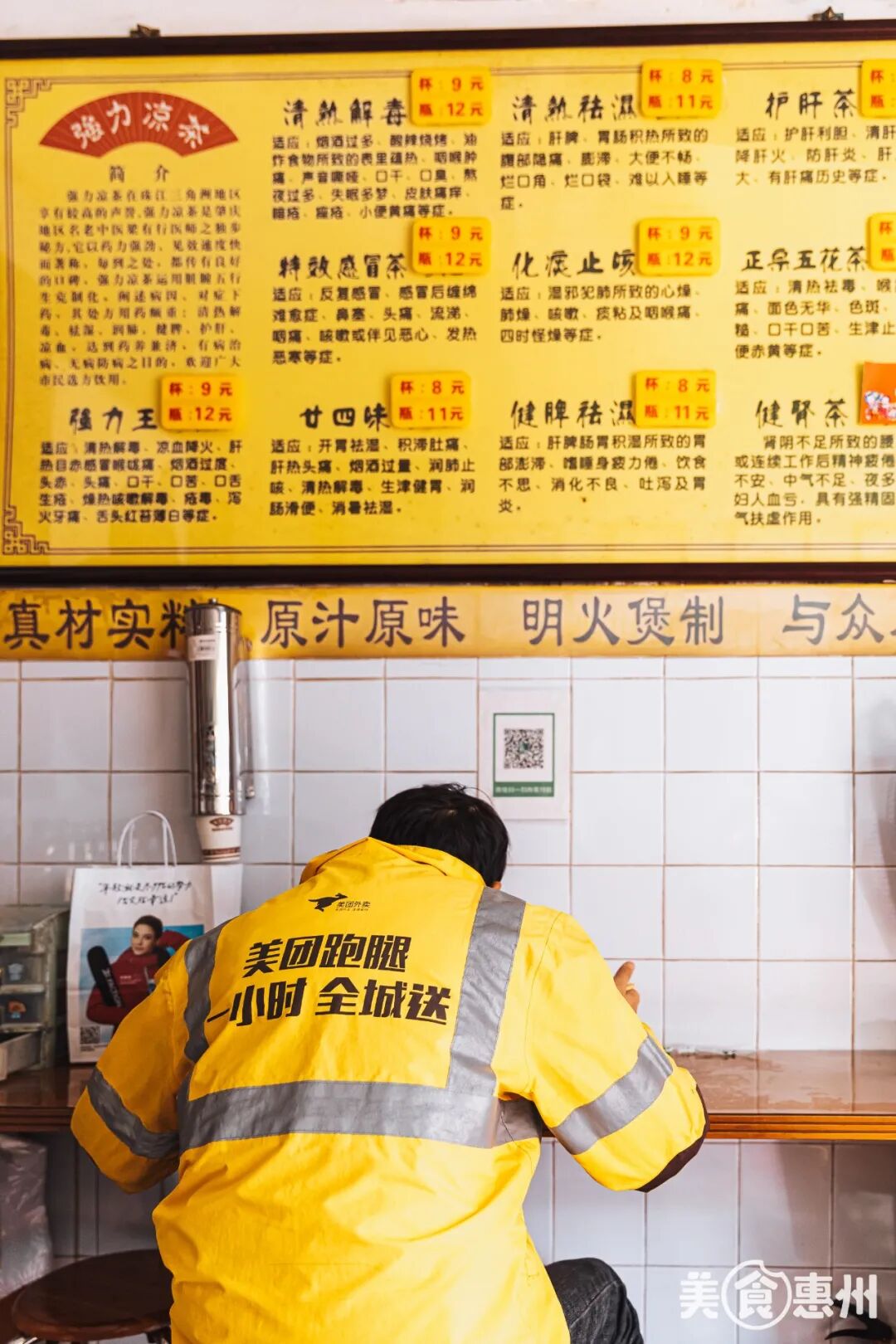 在等待的过程中,店内的客人络绎不绝,不管是一口惠州话的老街坊亦或者是外来生活的打工人,喝杯凉茶已然成为了融入进生活中的习惯。
