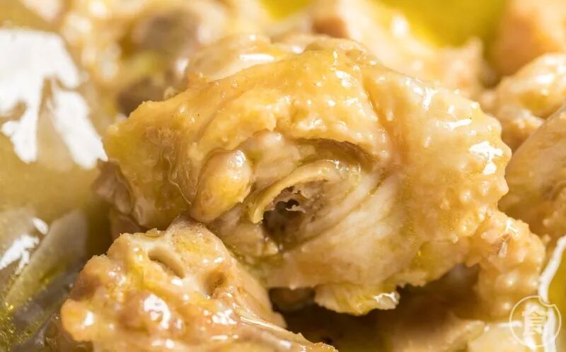 汤汁金黄,鸡肉吃起来皮和肉都很有劲道