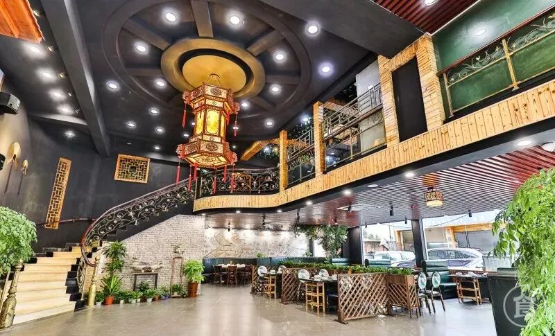 繁复优雅的复古宫灯悬挂在大厅中央
