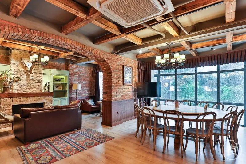 二楼最大的包间让我找到了常在电影里出现的画面,矮沙发和石砖墙,复古的装饰物和壁炉,仿佛穿越到欧洲,让人赖着不想走。