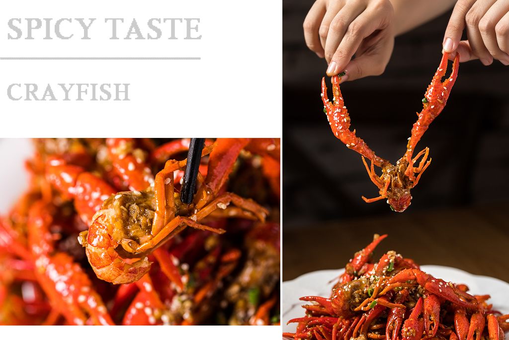 秘料焖制的酱汁裹在小龙虾的各个部位,刚上桌的香气使人无法转移对它的视线,吮吸龙虾上的酱汁才无比满足。