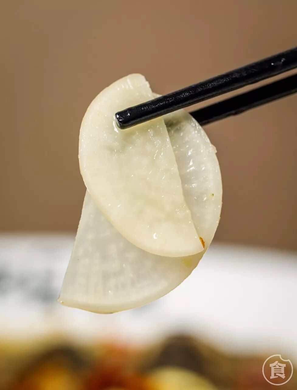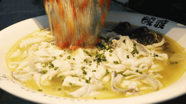喜欢它,还因为里面那滑溜溜的鱼片。“鱼,因为有酸菜才更好吃。”浸满了酸汤的鲈鱼鱼片,入味爽口还有芝麻醇香相伴,嫩滑无骨。