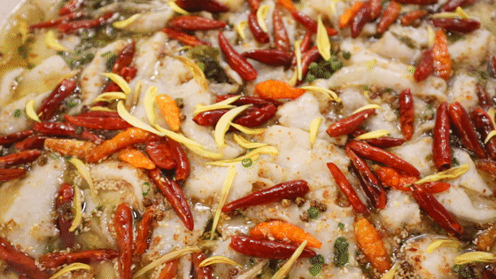 说时迟,那时快。师傅在透明玻璃窗下已经为你准备好了精心制作的酸菜鱼。混合各种辣椒的热油洒下,“兹拉”一声锁住了鱼肉的鲜味。