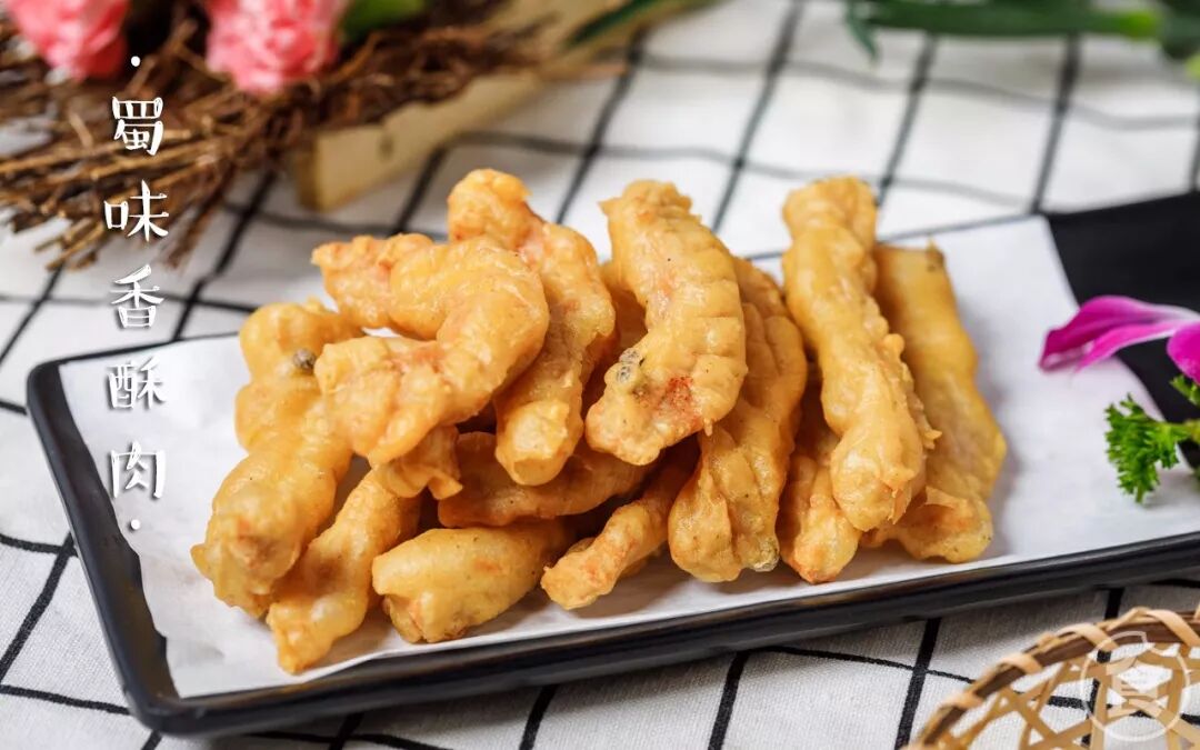 /蜀味香酥肉/ 喜欢酥肉一口入嘴的惊喜。外皮被炸得“脆啵啵”,内里依然保持软嫩。有时候,表面的花椒粒还会带给你惊喜味道哦。