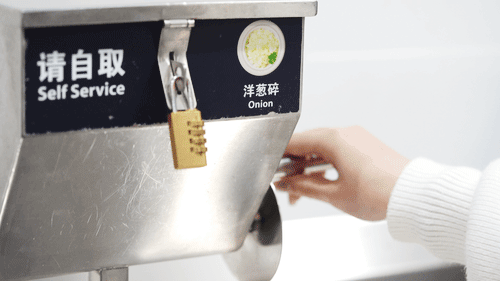 套餐包含了1个热狗包以及1杯无限续的冷饮,热狗包没有特别惊艳,但12块还要什么自行车?自助酱料台有3种酱料,可以根据自己口味添加,旁边还有洋葱机,趣味性十足。