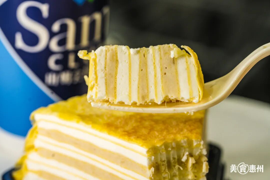 这份榴莲千层能看到榴莲肉的纤维质地,超级良心!冷冻过后有一点点硬,类似雪糕的口感,吃掉一整块都不会腻,个人觉得很值了!(毕竟榴莲在外面卖也不便宜)